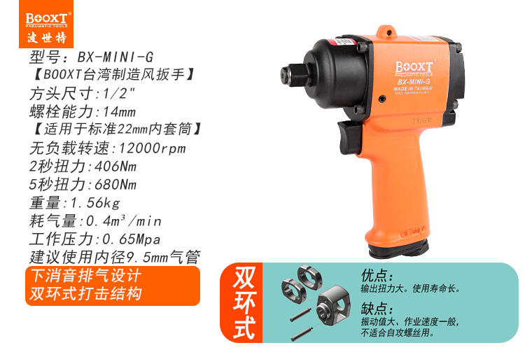 東莞市強勁五金工具有限公司提供臺灣BOOXT波世特品牌氣動工具,小型氣動扳手BX-MINI-G廠家直銷,首件享特價。咨詢熱線:4008301980