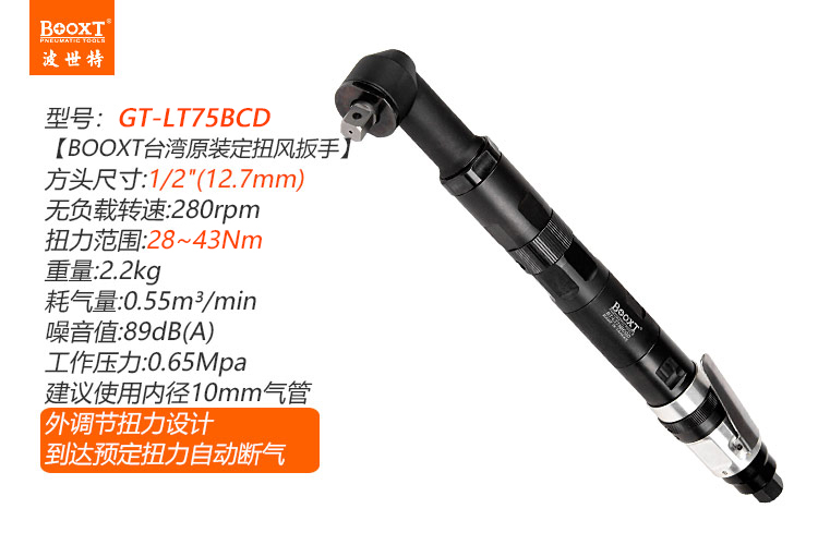 東莞市強勁五金工具有限公司提供臺灣BOOXT波世特品牌氣動工具,氣動定扭矩扳手GT-LT75BCD廠家直銷,首件享特價。咨詢熱線:4008301980